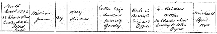 William James | Boy | Harry Lindars | Ester Eliza Lindars formerly Goodey |